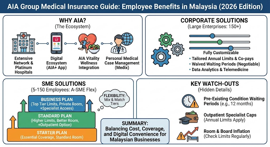 Whether you are running a lean SME or a large multinational corporation, navigating the options can be complex. This guide breaks down exactly how AIA’s group insurance works, the specific plans available, and the “insider” details you need to know before signing a policy.
